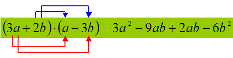 | (3x - 2y) (2x + y) | 6x2 +3xy -4xy -2y2 = 6x2 -xy -2y2 |